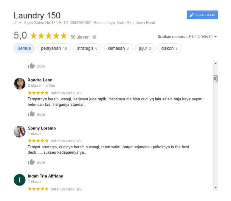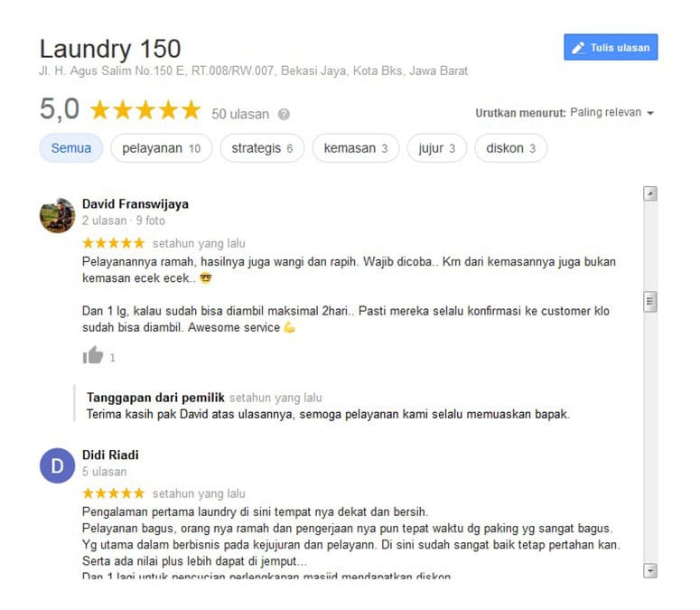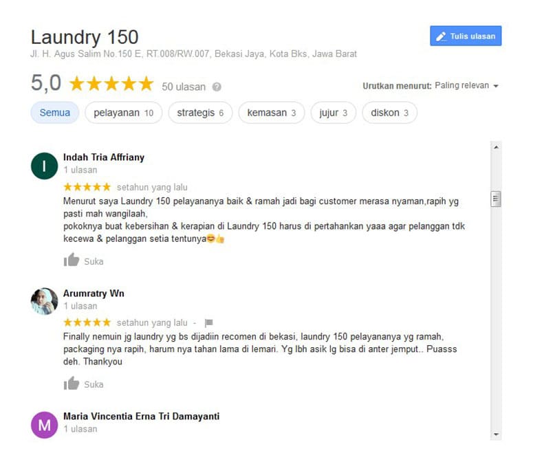 Laundry 150 merupakan jasa laundry kiloan Bekasi & jasa cuci karpet kantor yang memiliki workshop diJl. Kh. Agus Salim No. 150 Bekasi Jaya, Bekasi Timur. Laundry 150 adalah member dari Asosiasi Laundry Indonesia (ASLI) yang mengutamakan standar pelayanan yang baik. Baca Selengkapnya